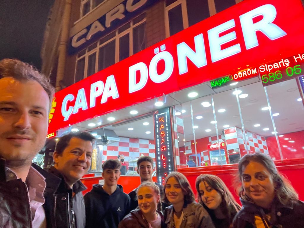 El día y nuestro viaje #ErasmusPlus se acababan y no quisimos que terminaran sin cerrar el círculo. Por eso, tras un paseo por nuestro barrio de Çapa, decidimos cenar en el Kebab donde lo hicimos la primera noche. Un fin de viaje Erasmus perfecto para una semana perfecta. Estos cinco alumnos han sido una compañía insuperable, aunque no podemos evitar recordar a los compañeros que acogieron a los alumnos turcos allá por febrero de 2020 y que no podrán disfrutar de las movilidades del proyecto #ScienceinOurHands al no estar ya en nuestro colegio.