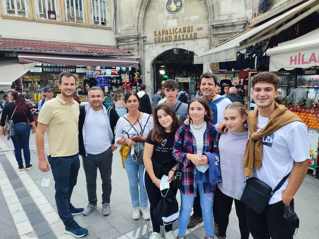 En el mismo hotel de la primera noche nos esperaba un guía inesperado: el cuñado de nuestro socio y amigo Yalçim, coordinador Erasmus del colegio de Yenipazar. Dejamos las maletas y nos dirigimos al famoso Gran Bazar de Estambul,. Desplegamos nuestras artes regateadoras con los comerciantes, compramos recuerdos y hubo quien se vino arriba y hasta compró zapatillas de último modelo a un excelente precio. Un lugar que nos dejó alucinados por el movimiento de gente, la vida, la gran cantidad de productos que se pueden comprar y por la inmensidad y belleza del edificio.