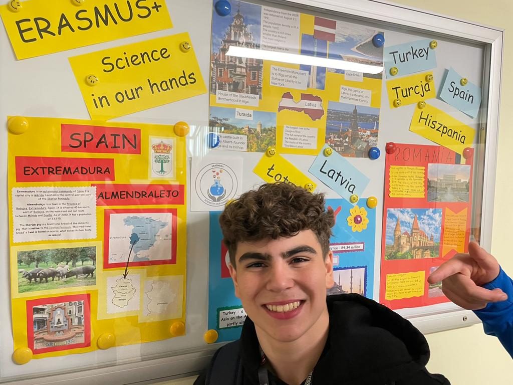 Amanecimos bastante soñolientos, tras un día de 14 horas de viaje, con furgoneta Erasmus incluida. El desayuno, muy abundante y variado, y el paseo hacia el colegio, muy agradable. Allí nos hicieron una bienvenida muy acogedora, con bailes, actuaciones deportivas. Todo muy emotivo y lleno de buenos deseos para esta semana. Continuamos con un tour muy completo por el colegio, que era una pasada (ya le pasaré el modelo a don Javier para que lo plagie). Tenía pista de atletismo, múltiples salas de tecnología y hasta un gimnasio con mancuernas. Además estaba repleto de referencias a Europa, a #ErasmusPlus y a todos los países socios. Pudimos comprobar además que hay varios alumnos venidos desde Ucrania.